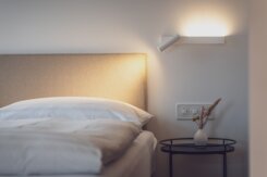 On the 4th floor of Joseph's House is the Senior Suite. The 60 square meter suite with a kitchen and washing machine/dryer is ideal for longer stays for up to four people. On the veranda or in the modern Senior Suite, couples, friends, or families can enjoy cozy evenings after eventful days.